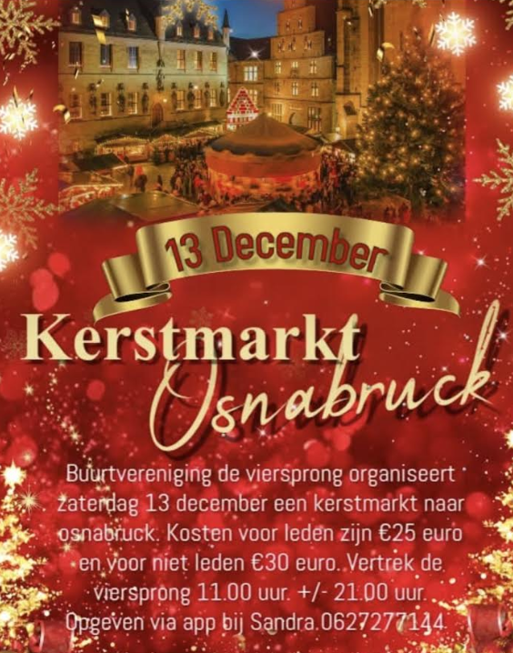 MOCHT JE NOG MEE WILLEN NAAR DE LEUKE KERSTMARKT, WACHT DAN NIET TE LANG MET OPGEVEN, DIT KAN VIA EEN APP NAAR SANDRA 0627277144!!