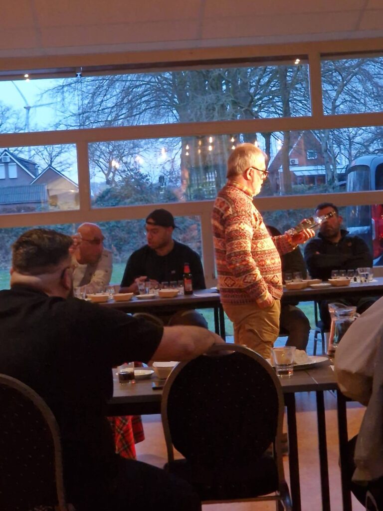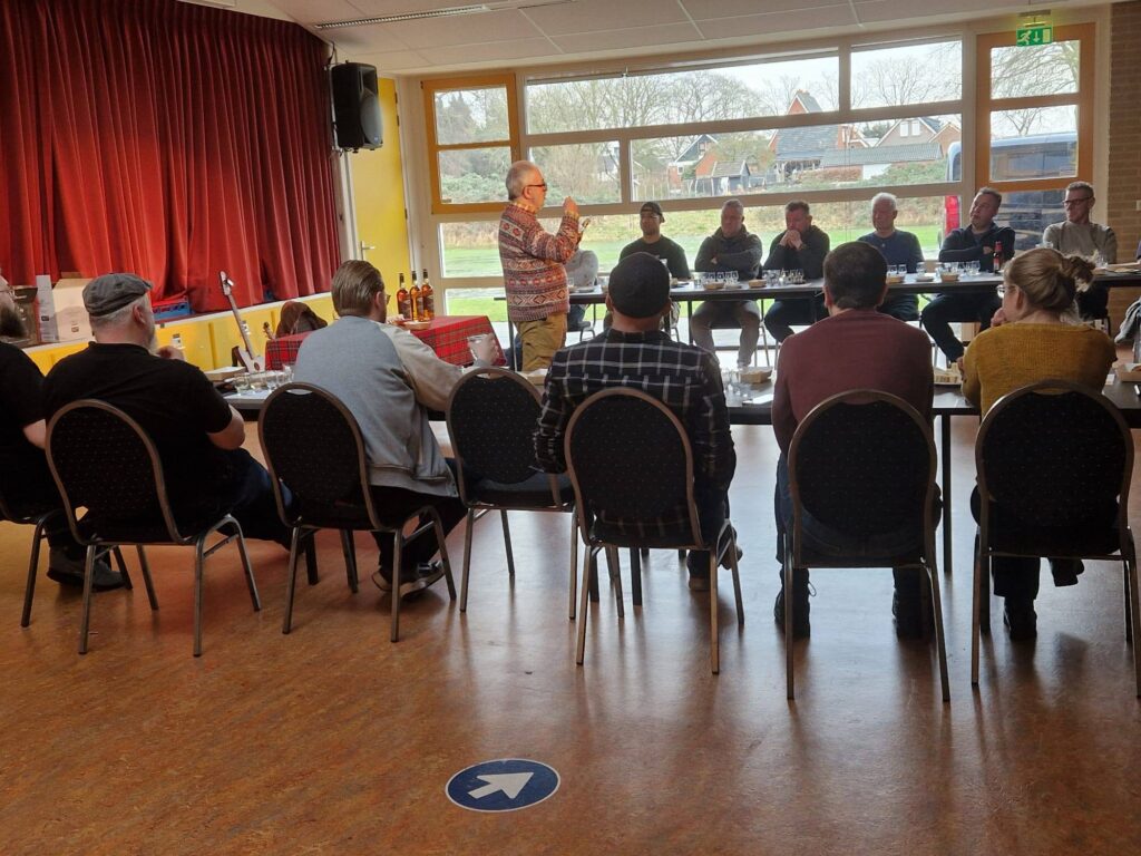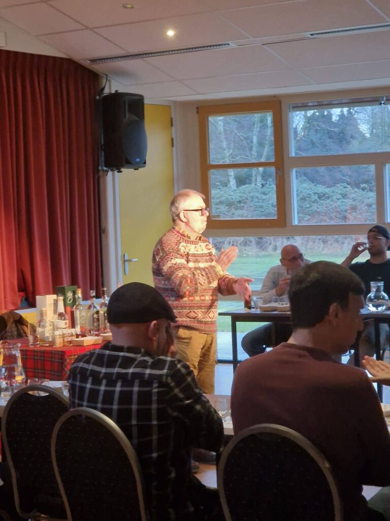 Wederom was Jock Shaw naar BV de viersprong gekomen om een interessante whisky proeverij te verzorgen. Een flinke opkomst was er zondagmiddag. Van Jock zijn we gewend dat na de toelichting van de desbetreffende whisky niet gestopt wordt met praten… Vele anekdotes, grappen en Schotse liedjes werden ten gehore gebracht door deze fantastische whisky kenner en ras entertainer! Uiteraard draait het om de whisky, maar de gezelligheid zorgt voor een prima sfeer en dat bepaalt uiteindelijk ook de beleving van de gast. Tijdens de proeverij zijn de volgende whiskys aan bod gekomen: Lambay Irisch Single Grain Kanasuke Japanese Sinle Malt Sochsu vaten Paul John Indian Sinle malt Portvat Coopers Choice Tamdhu Golden Cut Marsala Coopers Choice Bunnahadhain Port Finish Coopers C Golden Cut Croftengea Heavy peat We kunnen terugkijken op een zeer geslaagde proeverij met een prachtige balans tussen de smaken van de de verschillende soorten. Toegankelijk, krachtig, kruidig en flink geturfd. Via deze weg onze dank aan Jock voor de geweldige presentatie en alle aanwezige proevers voor de gezelligheid en leuke gesprekken. Er komt weer een nieuwe proverij in de agenda te staan!